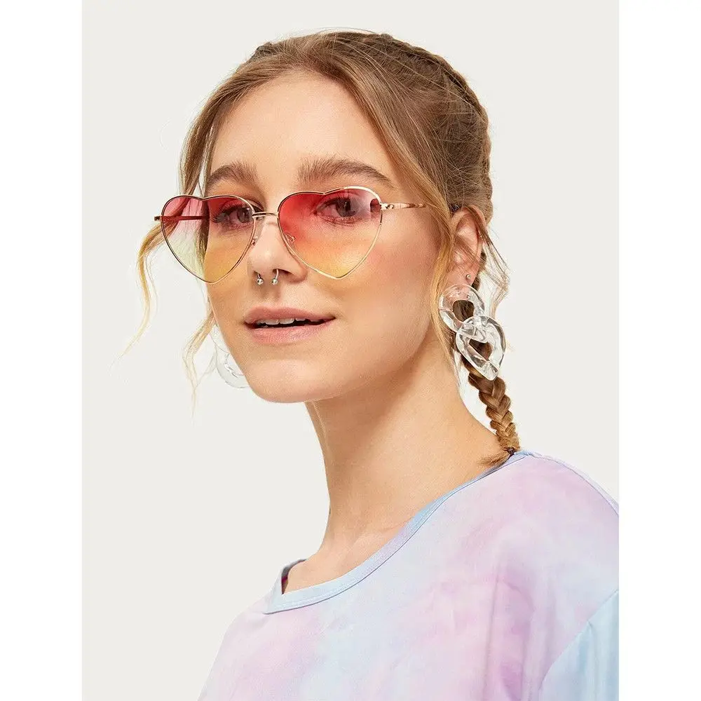 Metal Frame Heart-Shaped Glasses Women Heart Sunglasses UV400 Protection Polarized Glasses Shades Eyewear Fancy Accessories